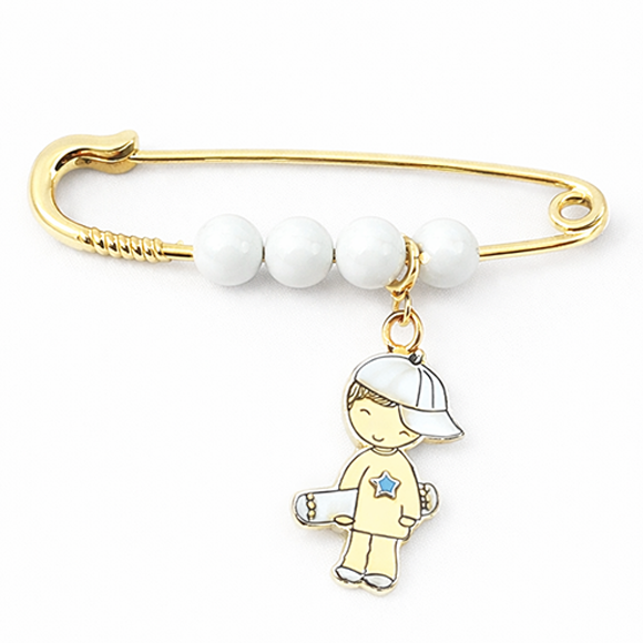 ☆ pin: 18-carat fine gold ☆ pin size: 3.5cm ☆ charm size: 1.5cm approx ☆ pin stone bead: 4 qty - Turquoise Blue ☆ pop it in your basket and pin it on your swaggy little hunk!