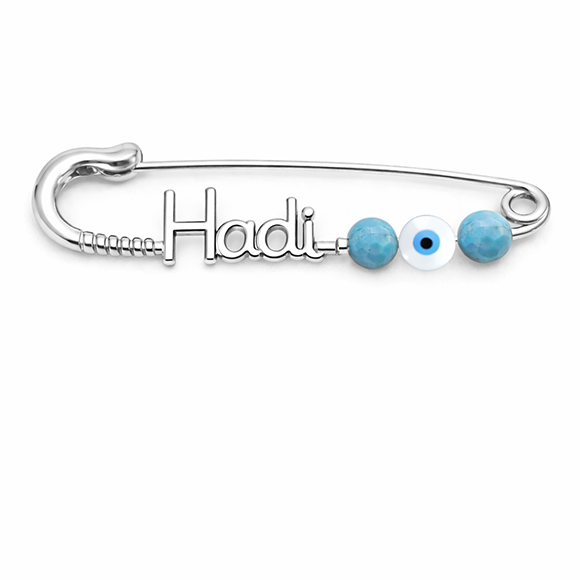 ☆ pin: 18-carat fine gold ☆ pin size: 4cm, 4.5cm, 5cm ☆ name size: letter limit set by pin size ☆ pin stone beadz: 2 stone beadz of choice + 1 EvilEye ☆ metal: yellow, white, or rose gold ☆ name it and pop those pretty stone beads on ☆ Pin it with love!
