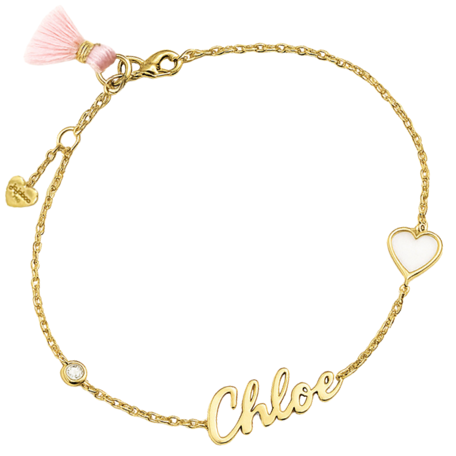 a very special bracelet made for your lil' love! This 18-carat gold charm bracelet carries their name, a bright diamond stone that sparkles like their light, and a twinkle heart that makes them shine!
